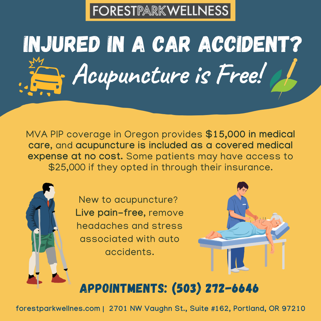 At Forest Park Wellness, we’ve treated Portland auto-injury patients for over 16 years. Whether symptoms are mild or severe, early acupuncture speeds recovery and protects your long-term health.